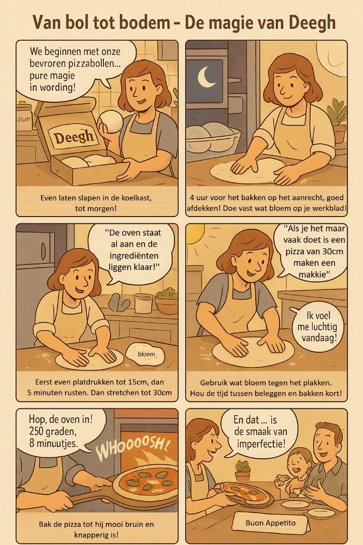 Geniet van de geur, de krokante bodem en de pure smaak van écht vers pizzadeeg van Deegh.